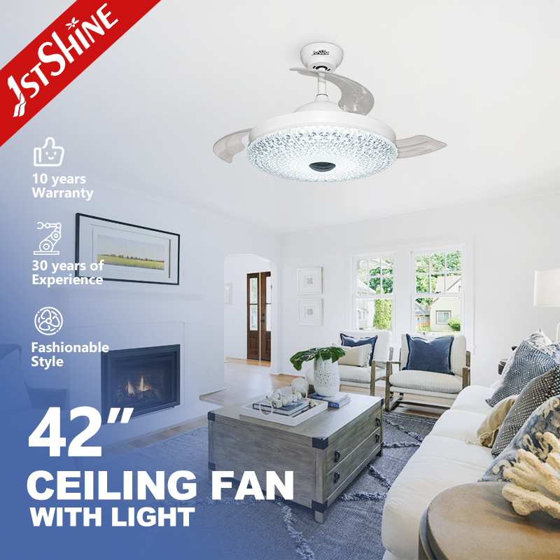 यह वापस लेने योग्य ऐक्रेलिक ब्लेड पंखा चालू होने पर स्वचालित रूप से विस्तारित होते हैं और बंद होने पर वापस चले जाते हैं, जिससे एक साफ झूमर जैसी उपस्थिति बनी रहती है। क्रिस्टल-शैली का ऐक्रेलिक लैंपशेड प्रकाश प्रसार को बढ़ाता है और किसी भी इंटीरियर में एक शानदार स्पर्श लाता है।