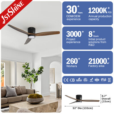 This 52-inch ceiling fan with 3 solid wood blades and a DC motor combines efficiency and elegance, making it the perfect addition to your modern living space. The flush mount design and integrated LED light offer practical functionality, providing both cooling and lighting with a sleek, stylish finish.